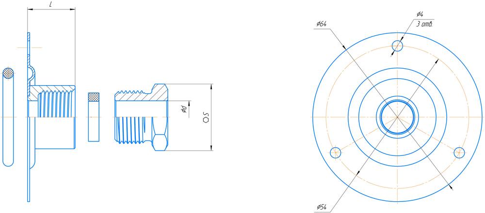Бобышки устанавливаются на месте эксплуатации при помощи самонарезных винтов. Бобышки предназначены для установки датчиков без штуцера с регулировкой монтажной части зажимной гайкой к воздуховодам и подразделяются на 3 исполнения в зависимости от диаметра зонда датчика. Бобышки по умолчанию изготавливаются из стали СТ20 с никелированием.