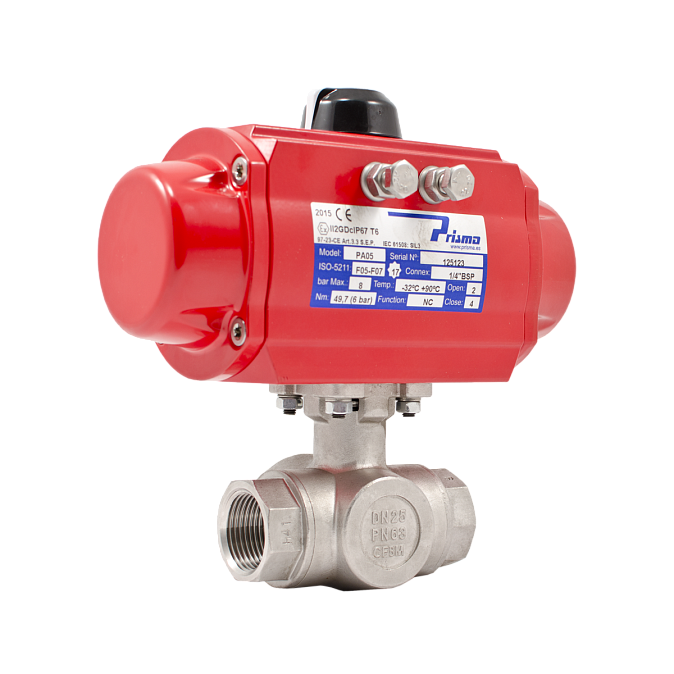 Краны шаровые из нержавеющей стали серии BV с пневмоприводами Prisma с возратной пружиной, DN 8–100 мм