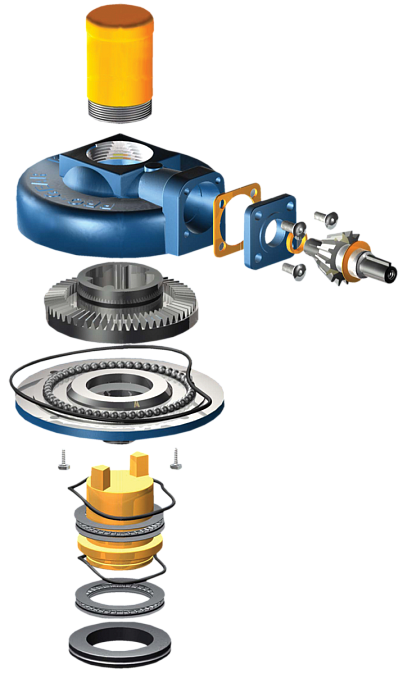 Редукторы серии K (конические) и R (цилиндрические) используются для работы с многооборотной арматурой либо совместно с четверть-оборотными редукторами серии Q. Все модели изготавливаются с чугунным корпусом, покрытым полиуретаном.